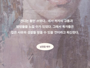 저자는 “이 책은 아픔과 질문의 시간을 지나고 있는 이들을 성급히 위로하지 않는다”며 “대신 오래 견딘 사람 곁에 조용히